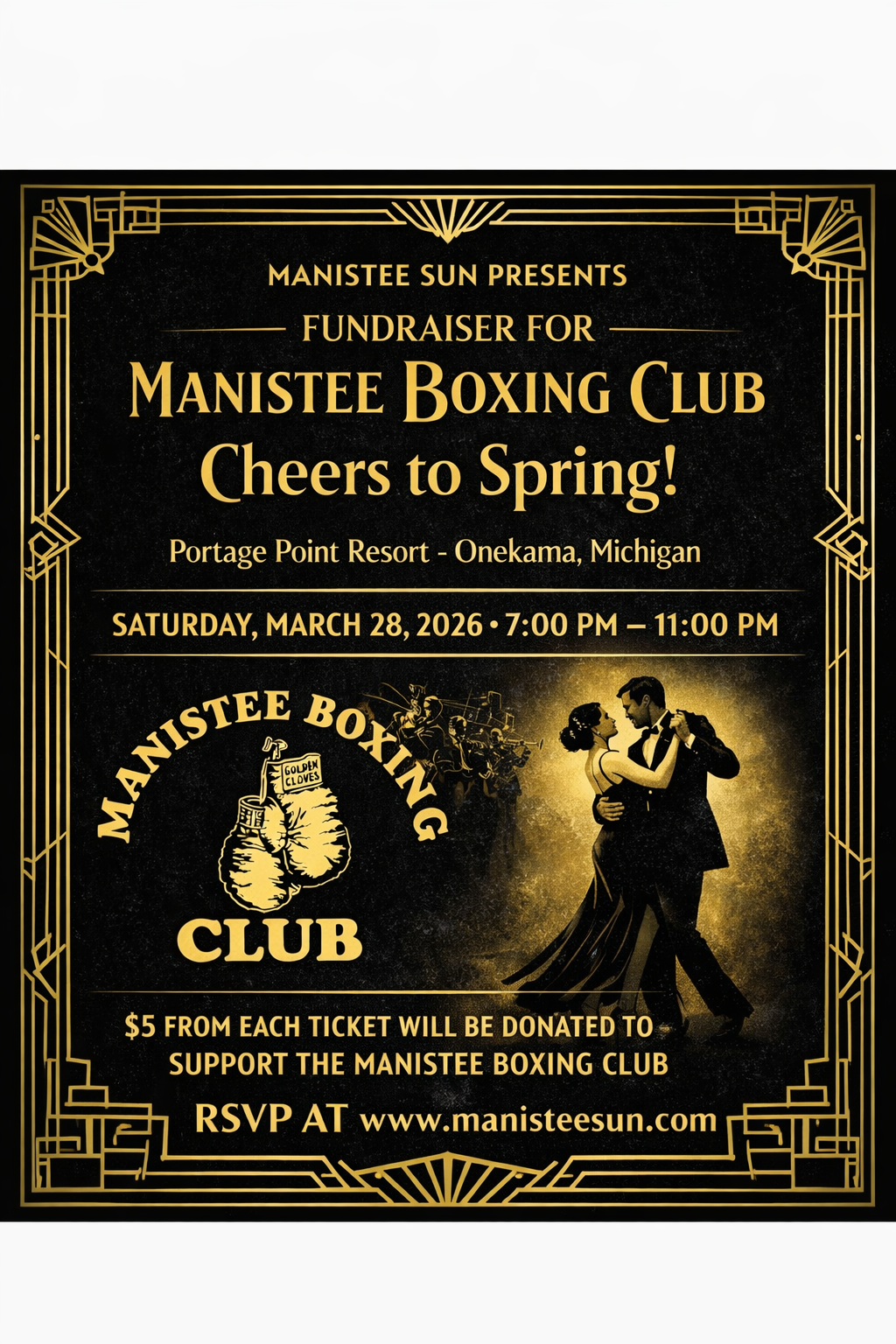 $5 from each ticket will be donated to support the Manistee Boxing Club.
